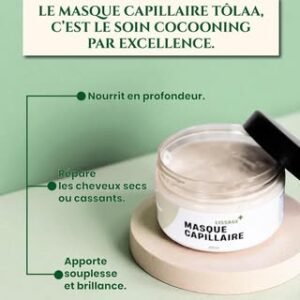 Le masque capillaire de la marque Tolaa, très nourrissant pour cheveux secs, il est issu d’une formulation conçue pour revitaliser, hydrater en profondeur et restaurer la santé des cheveux secs et déshydratés